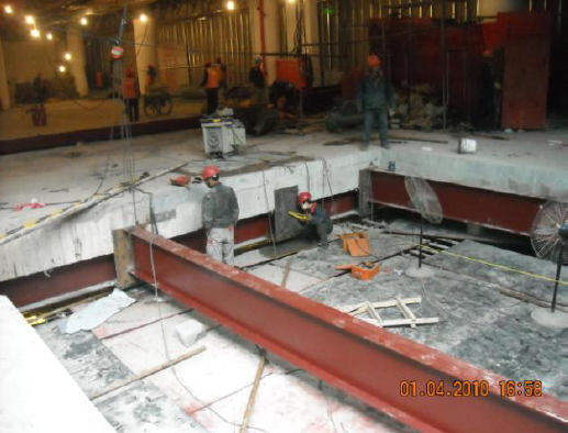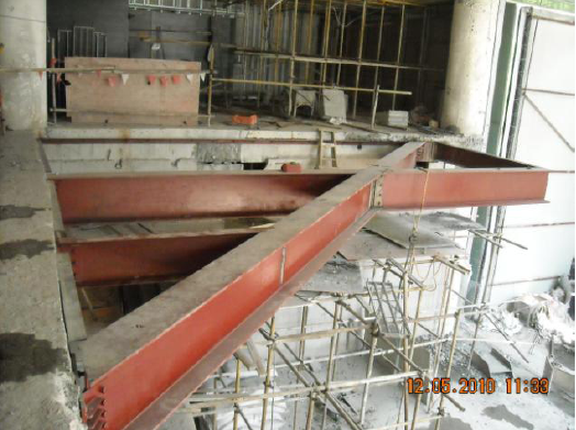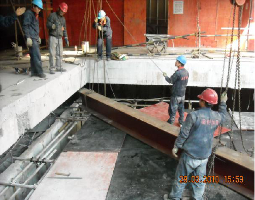 玻璃楼梯基础——原结构梁下新增钢梁吊装