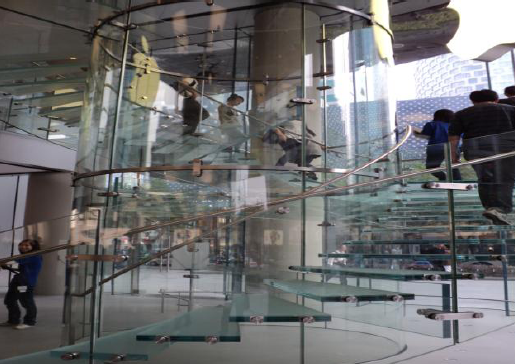 上海淮海路香港广场苹果店是上海市第一家按照苹果公司要求改造成巨幅全玻落地全通透设计的苹果旗舰店。该项目位于上海市淮海中路香港广场,为满足苹果旗舰店的空间使用要求进行了大规模的结构改造。改造内容包括拆除原结构楼板、梁,新增钢结构、楼板、电梯井,原梁粘钢加固、碳纤维布粘贴加固。工程总造价370余万元。本次结构改造加固施工于2010年3月15日开始至2010年7月15日竣工,历时120天,按照合同工期顺利完工交付。